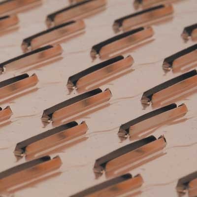 Abstract close-up of geometric metallic pattern.