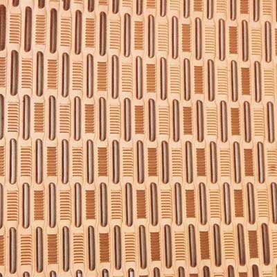 Geometric wooden design with vertical cutouts.