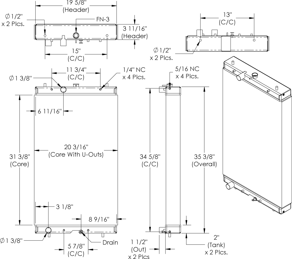 | ALLF 101924 | Core | 31 3/8 | 20 3/16 | 3 7/16 | TK 101925 | 1 3/8" CON. | — | — |