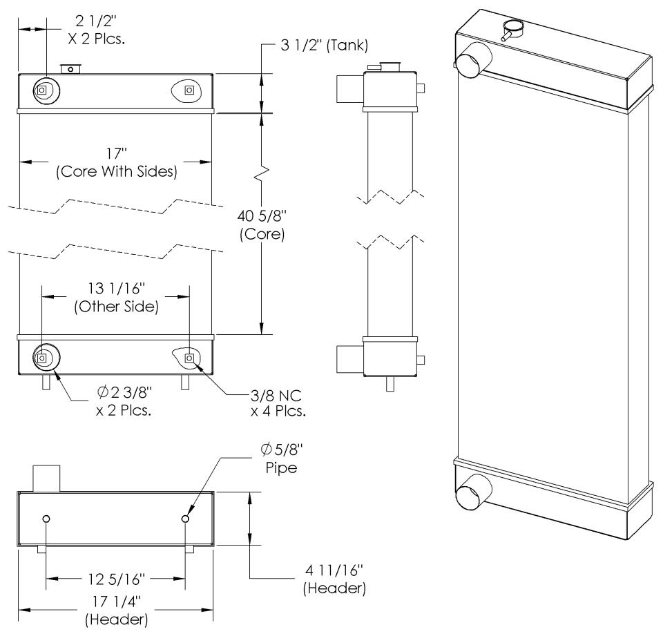 | IN 26678 | Core | 40 3/4 | 17 1/2 | 4 | TK 26676 | 2 1/2" CON. | — | — |