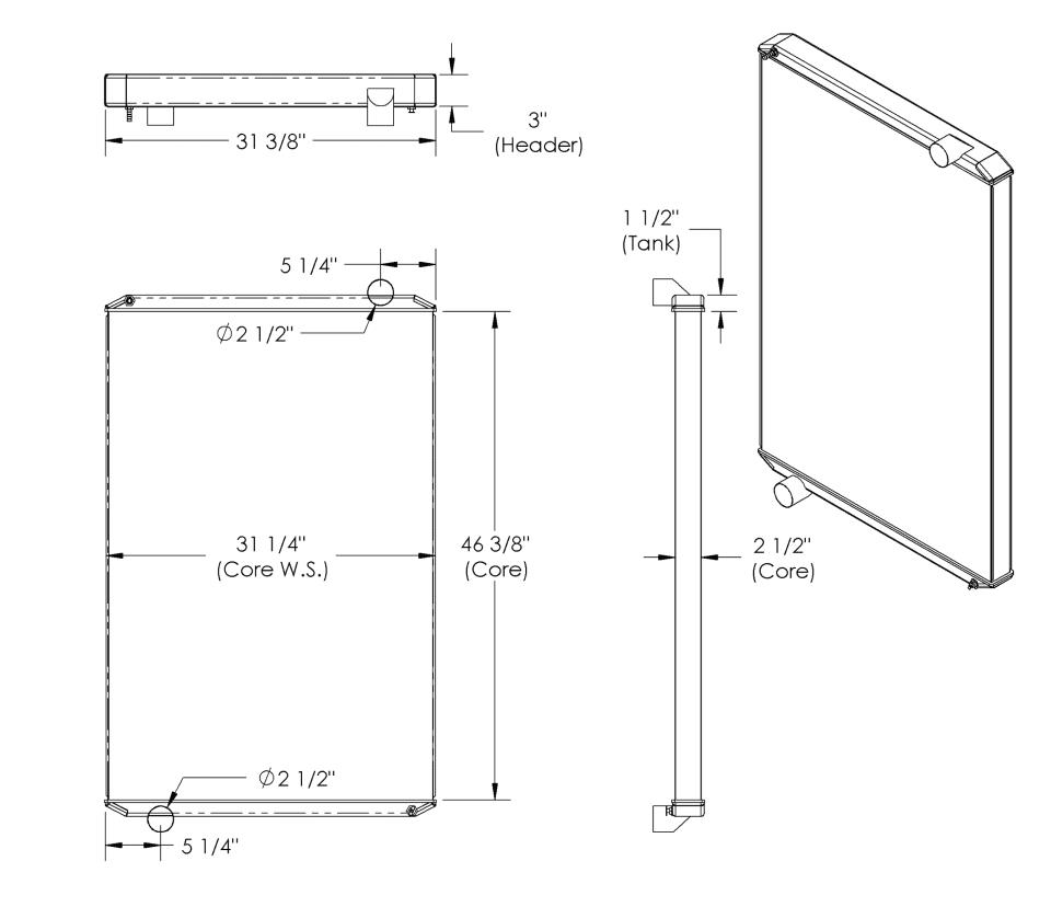 | PC 7284 | Core | 46 3/8 | 31 1/4 | 2 1/2 | 65 | 2 1/2" CON. | — | — |