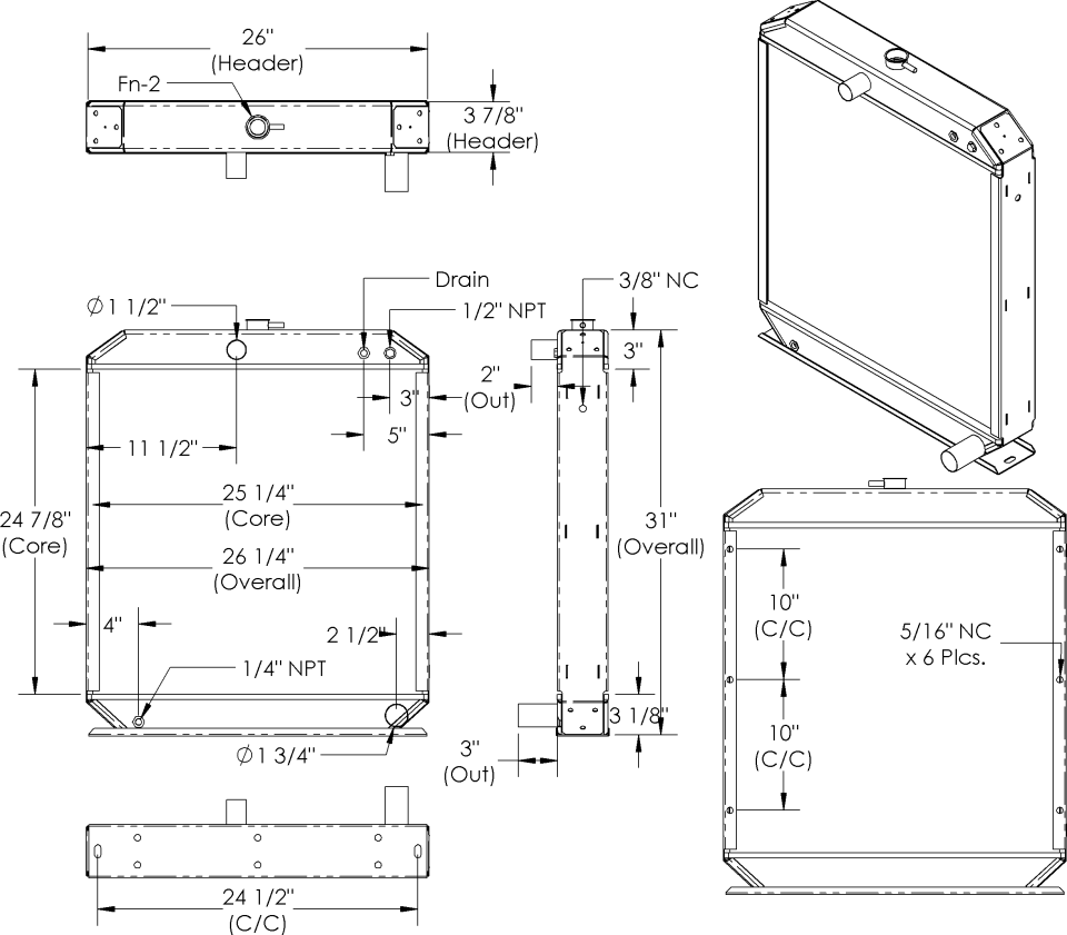 | PC 52028 | Core | 19 5/8 | 17 3/8 | 2 1/2 | — | 1 1/2" CONN. | — | — |