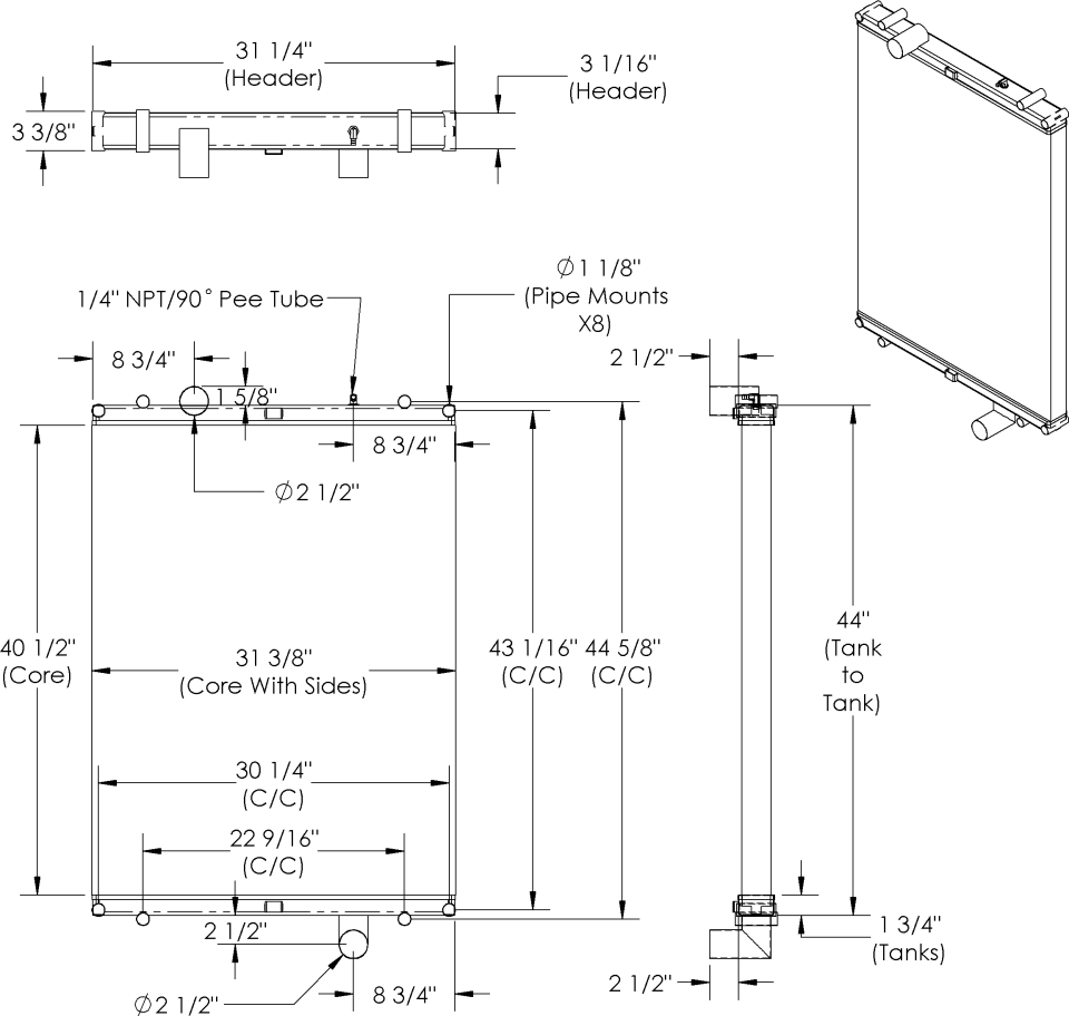 | PC 43325 | Core | 40 1/2 | 31 3/8 | 2 1/2 | — | TK 43972 | — | — |