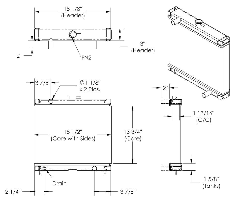 IH 21603 Core 13 3/4 18 1/2 2 3/16 TK 21604 1 1/8" CON. — —