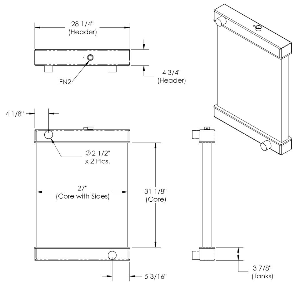 Technical radiator blueprint with measurements and specifications.