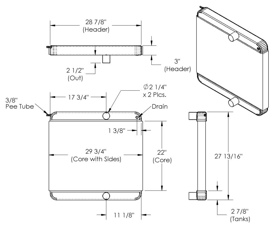 FE 23556 Core 22 29 3/4 2 1/8 TK 23557 2 1/4" CON. — —