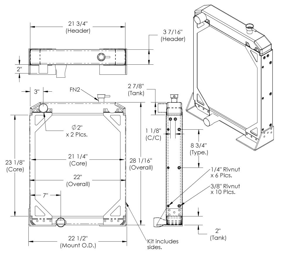 IH 28725 Core 23 1/8 21 1/4 2 11/16 TK 28726 2" CON. — —