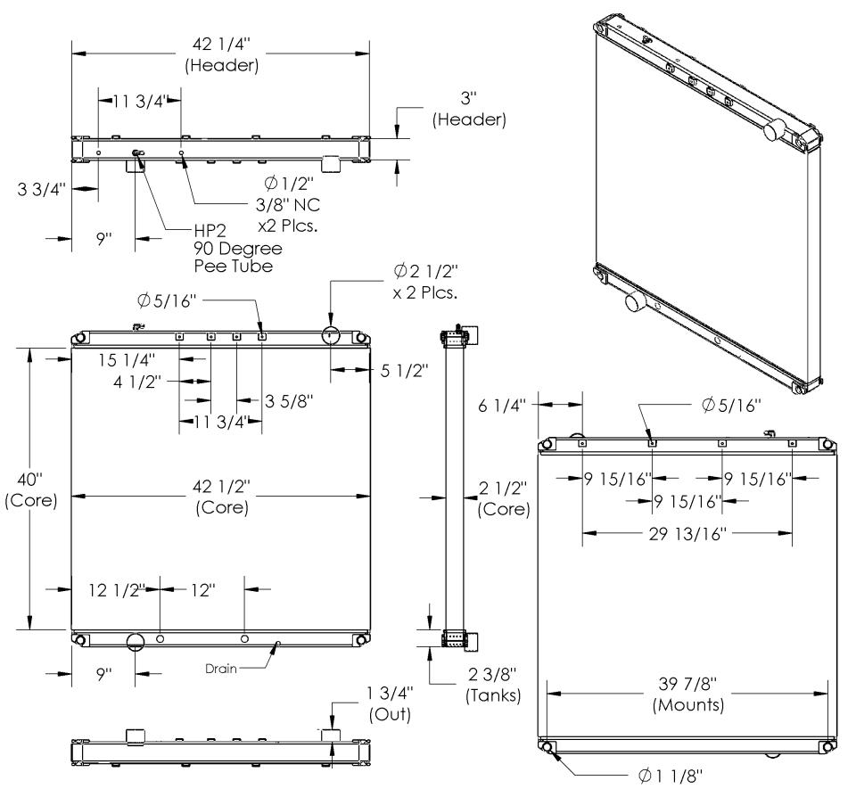 PC 40503 Core 40 42 1/2 2 1/2 TK 45105 2.5" CONN. — —