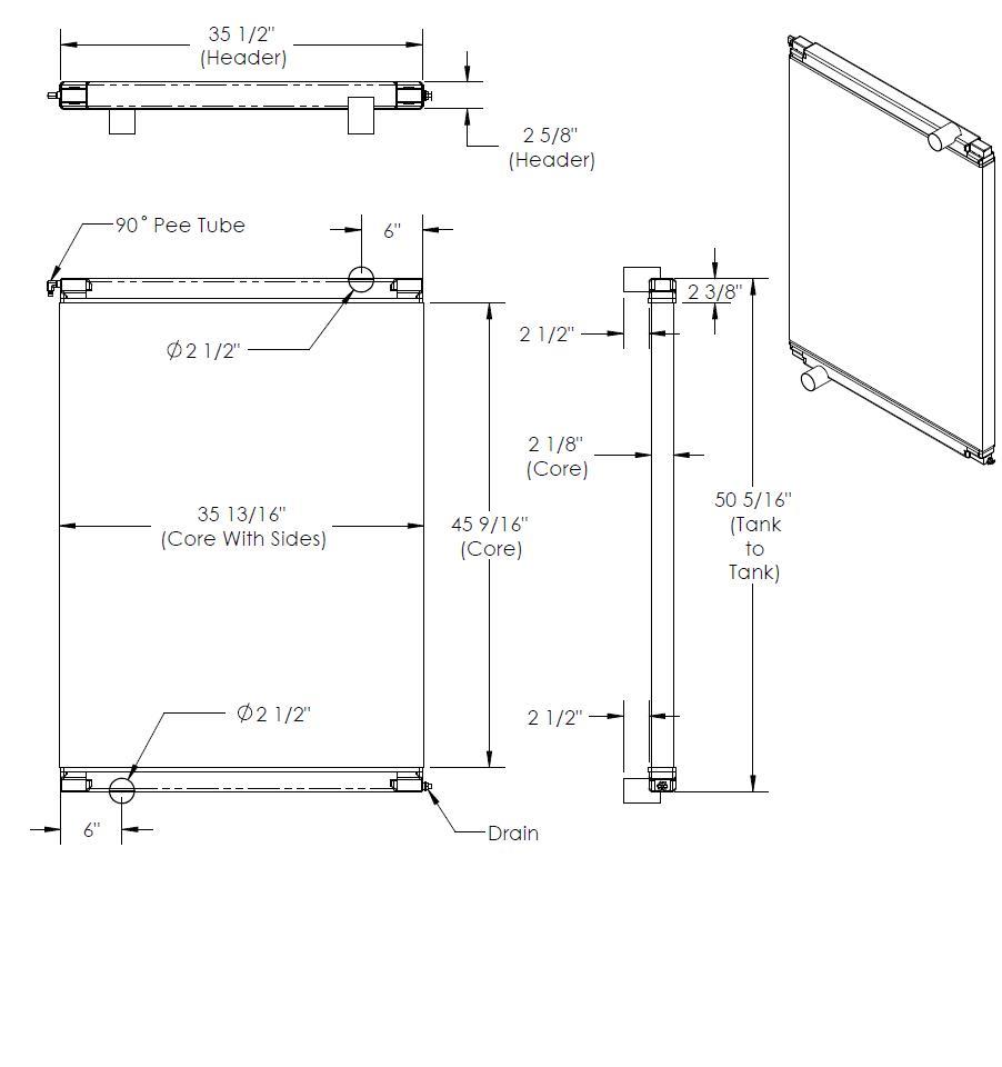 Radiator schematic with measurements and labels.